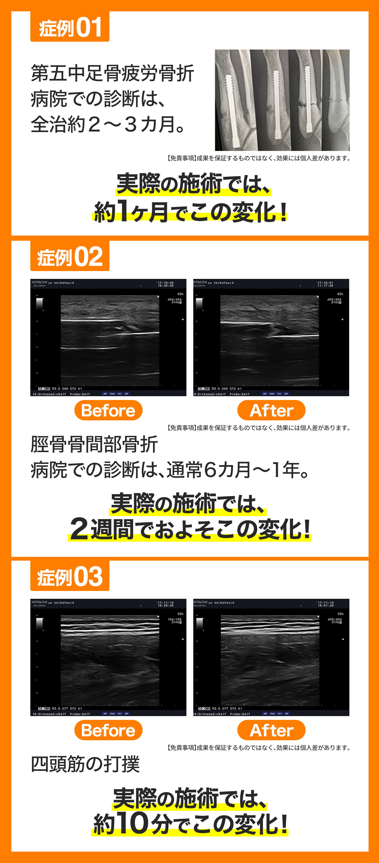 施術を受けに来られる方にとっても、手術しなくていいのなら体への負担も少なく大事な試合に出れる可能性も広がるので、少しでもお役に立てればいいなと思っています。